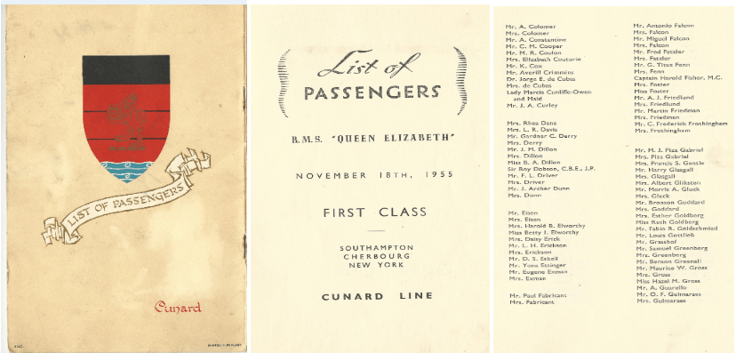 My parents were 27 years old at the time! My Father was a self-made man, an autodidact, an entrepreneur, a man of vision, even at that young age. We were soon leaving on the Queen Elizabeth from NY Harbor to Southampton, England. And I got top billing as a passenger: Miss B.A. Dillon! At the tender age of 1.5 years.