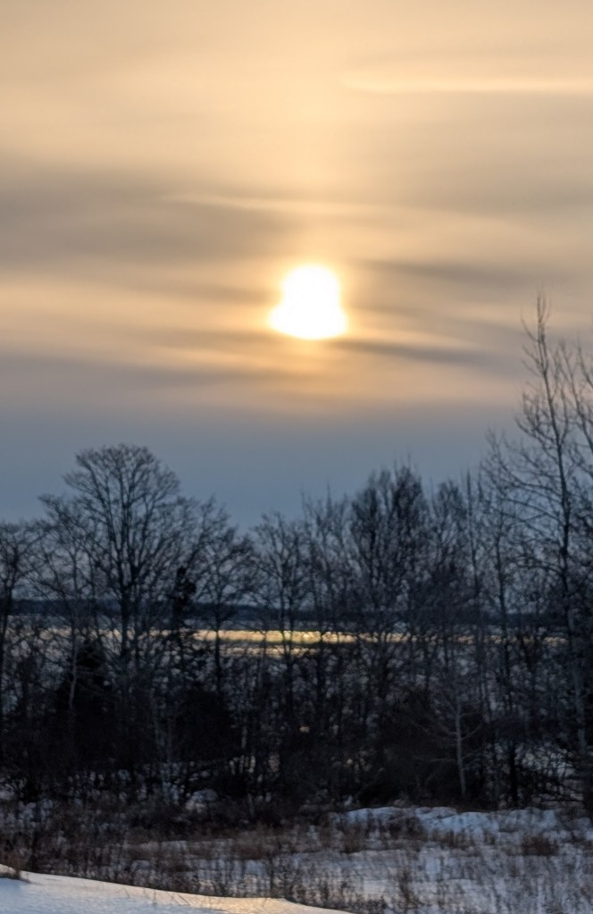 I turned away for a few minutes, and when I returned to keep observing, I was greeted with a different image altogether. Gone was the line and the pink. Instead, there was a silvery sun with its silvery reflection. It is times like these that I wish I were an artist, and could capture the beauty of a sunrise like this one.